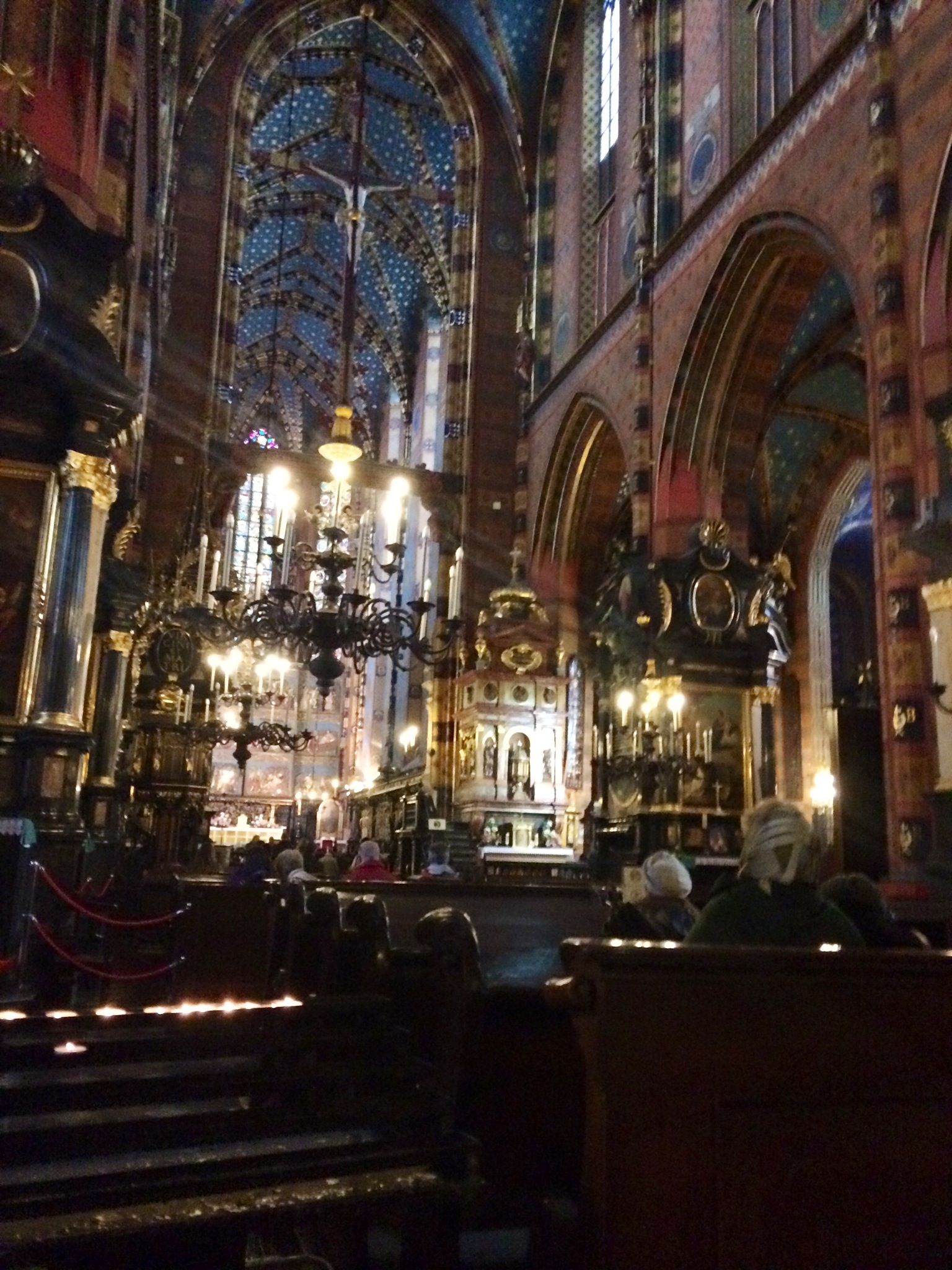St. Mary’s Basilica is a 14th century gothic-style church, famous for its trumpeter that plays on the hour (commemorating the trumpeter who was shot in the throat while warning on a Mongol attack in the 13th century).